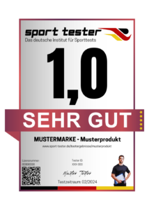 Sie erhalten das Sport-Tester © Gütesiegel als PNG zugesendet und können es ab diesem Zeitpunkt uneingeschränkt für die Vermarktung des geprüften Produkts kommerziell verwenden.