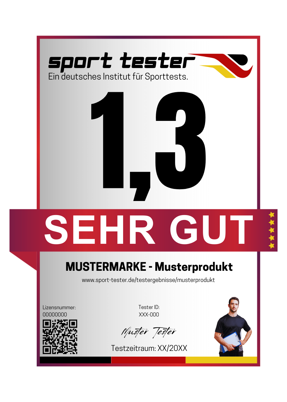 Das Gütesiegel von Sport Tester kann das Kaufverhalten positiv beeinflussen und Kunden dazu ermutigen, Ihr Produkt zu wählen.